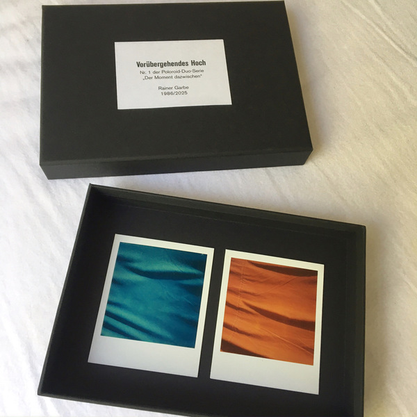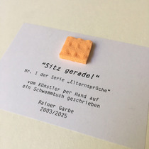 Siegfried Sander hat sechs Arbeiten von mir in sein Angebot aufgenommen: drei Polaroid-Duo-Werke der Serie "Der Moment dazwischen" und drei Schwammtuch-Arbeiten der Serie "Elternsprüche".