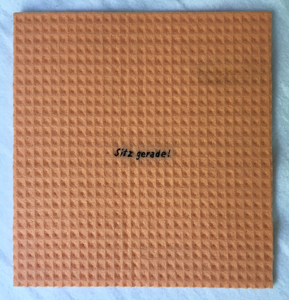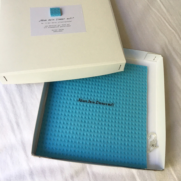 Drei von 24 Arbeiten aus der Schwammtuch-Serie "Elternsprüche"