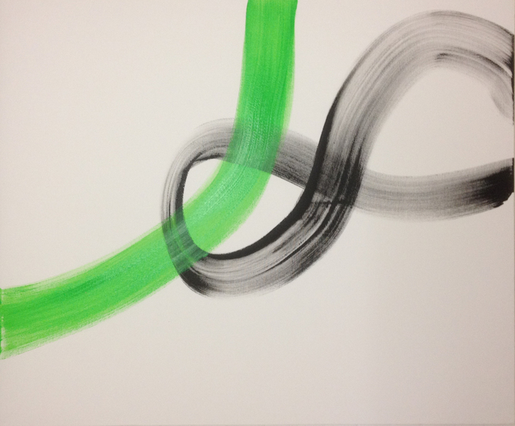 GESTE GRÜN, BLAU und PINK, 2018, Acryl auf Leinwand, je 100 x 120 cm