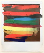 JOGGING, 2019, Acryl, Ölkreide und Graphitstift auf Leinwand (Übermalung), 55 x 205 cm